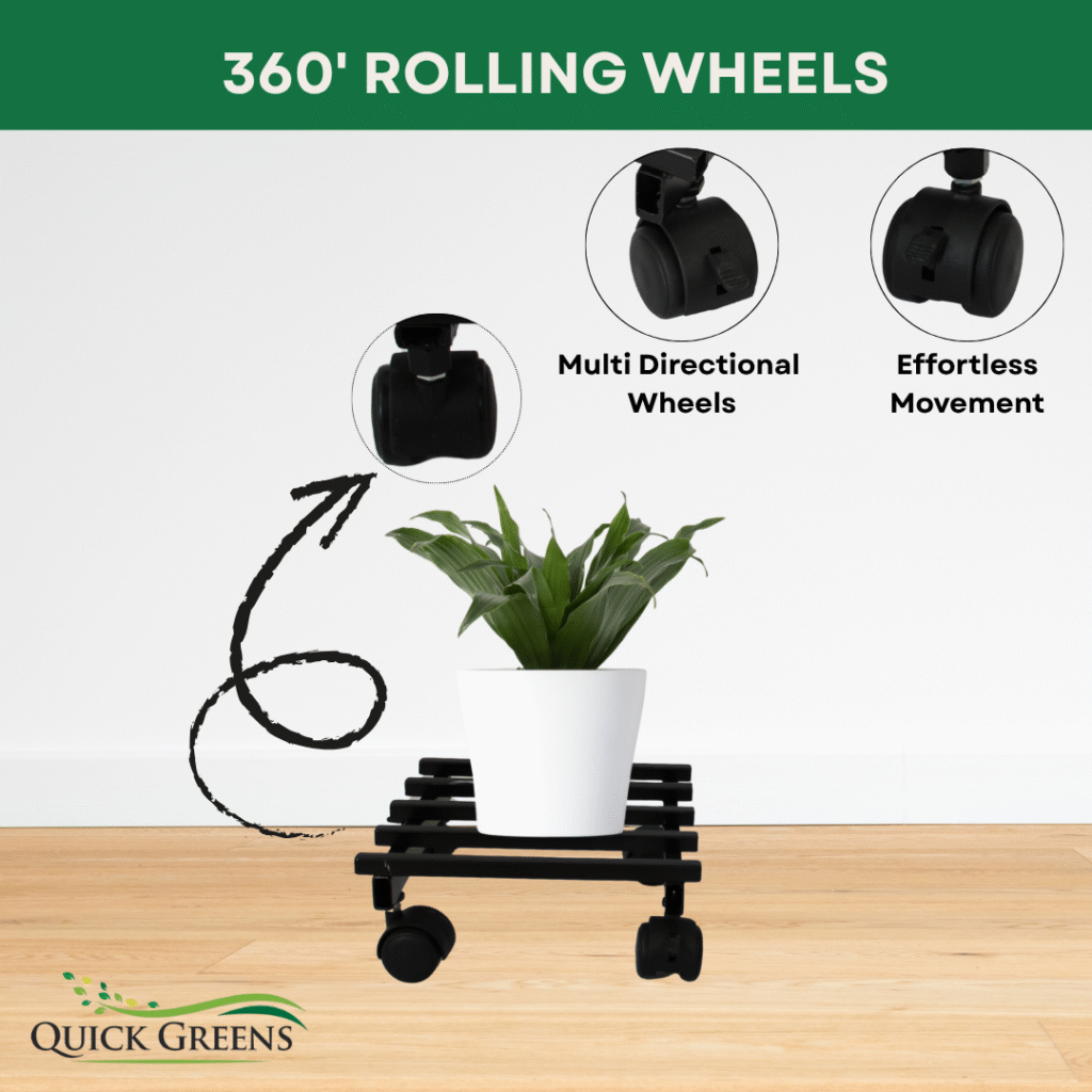 This rugged, rust-proof metal plant caddy easily holds large ceramic pots, flower tubs, and even water-filled barrelsâno tipping, no bending, no hassle. Whether you’re shifting plants to catch more sunlight or cleaning your floors, the 360° swivel wheels make every move smooth and scratch-free across wood, tile, concrete, or patio surfaces. Constructed from powder-coated, weather-resistant steel, itâs made to last through rain, sun, and humidity without rusting or wearing downâperfect for indoor and outdoor use year-round. Whether youâre styling your balcony garden, refreshing your living room, or organizing a greenhouse or patio, this rolling plant stand makes heavy lifting a thing of the past.