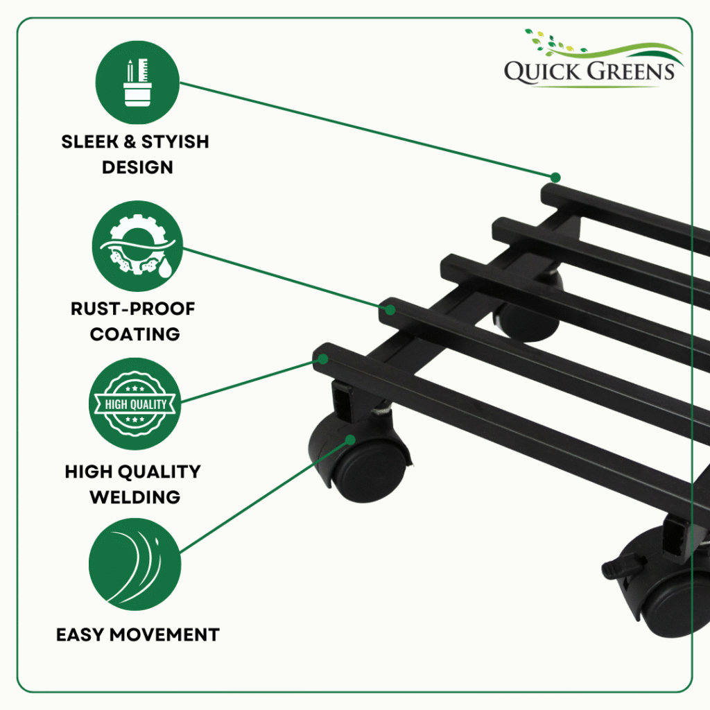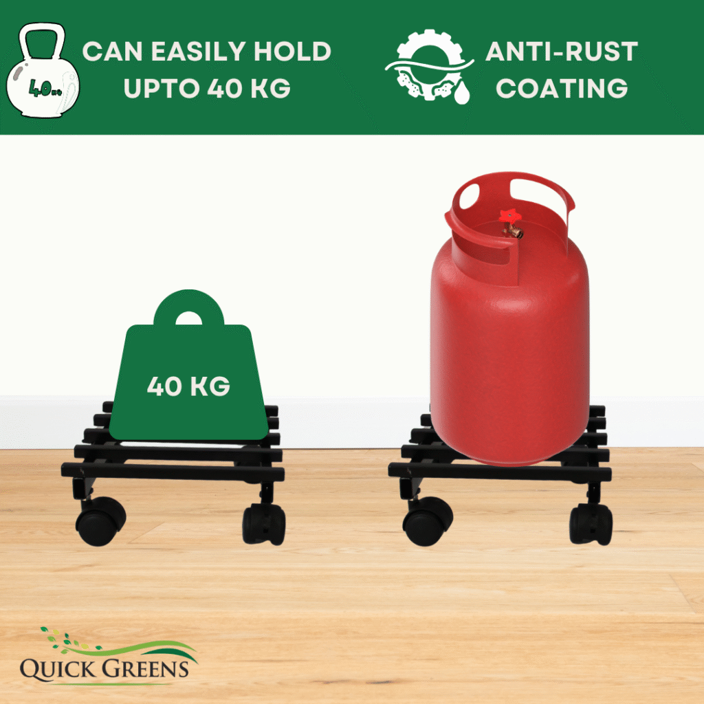 The ultimate solution for effortlessly moving heavy planters while adding a touch of modern functionality to your space. Designed for plant enthusiasts, home decorators, and balcony gardeners, this stylish yet ultra-strong pot stand delivers both performance and peace of mind. Built to support up to 40kg, this rugged, rust-proof metal plant caddy easily holds large ceramic pots, flower tubs, and even water-filled barrelsâno tipping, no bending, no hassle.