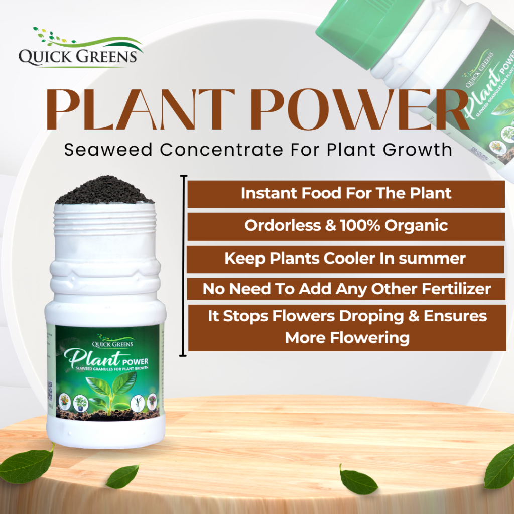 - Whether you are a seasoned gardener or a beginner, this Natural Fertilizer for Plants will provide your plants with the vital nourishment they require. Invest in the future health and beauty of your plants by incorporating Quick Greens Plant Power Seaweed Fertilizer Granules into your plant care routine.