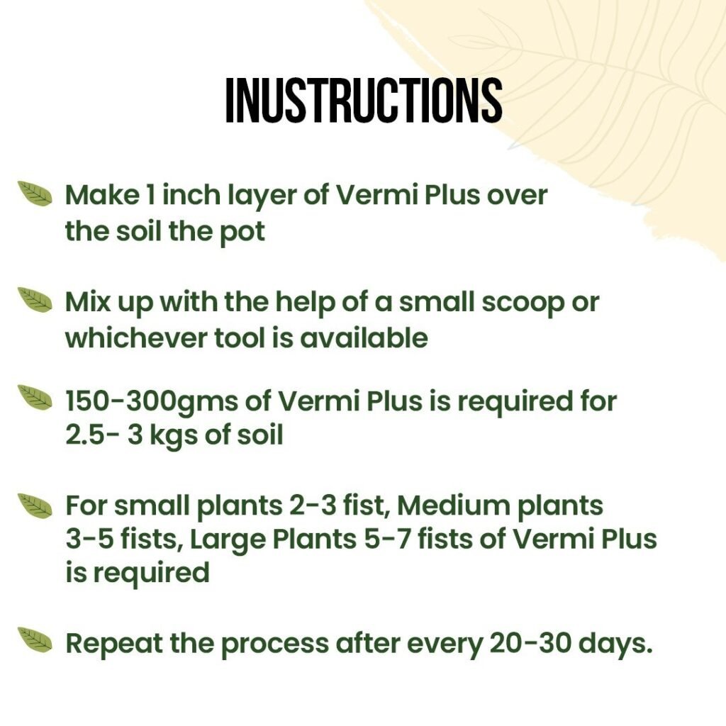 • Promotes Moisture Retention and Beneficial Bacteria: Incorporating Vermi Plus into your soil enhances its moisture retention capacity. This helps your plants withstand dry spells and reduces the need for frequent watering. Additionally, Vermi Plus promotes the growth of beneficial bacteria, fostering a healthy and vibrant ecosystem for your plants.